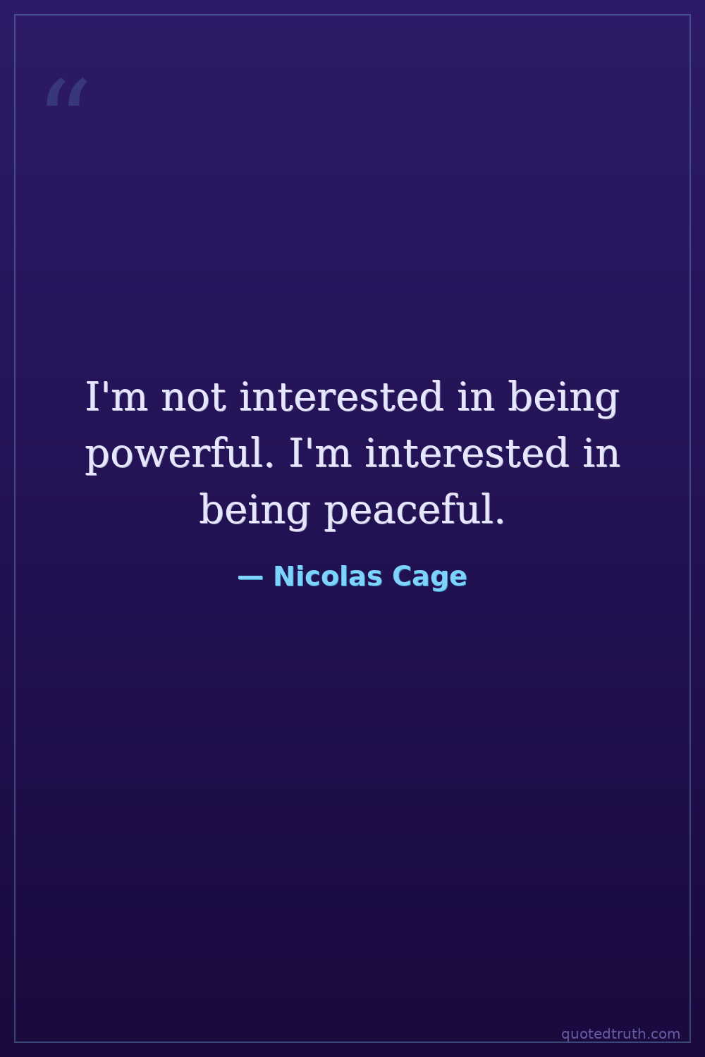 I'm not interested in being powerful. I'm interested in being peaceful.