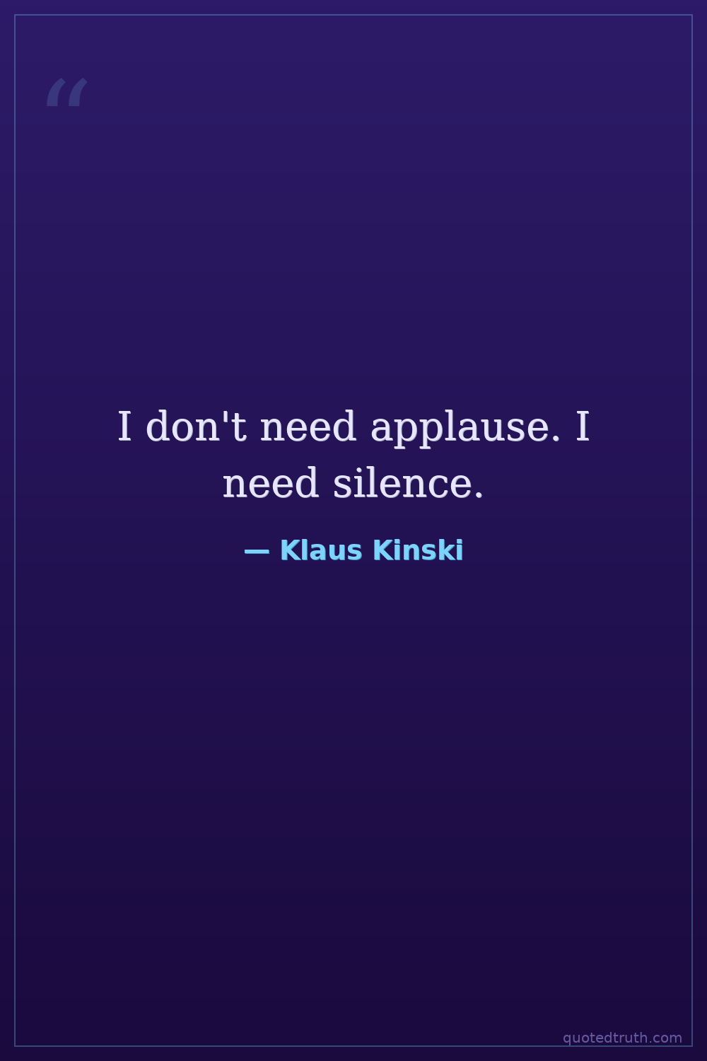 I don't need applause. I need silence.
