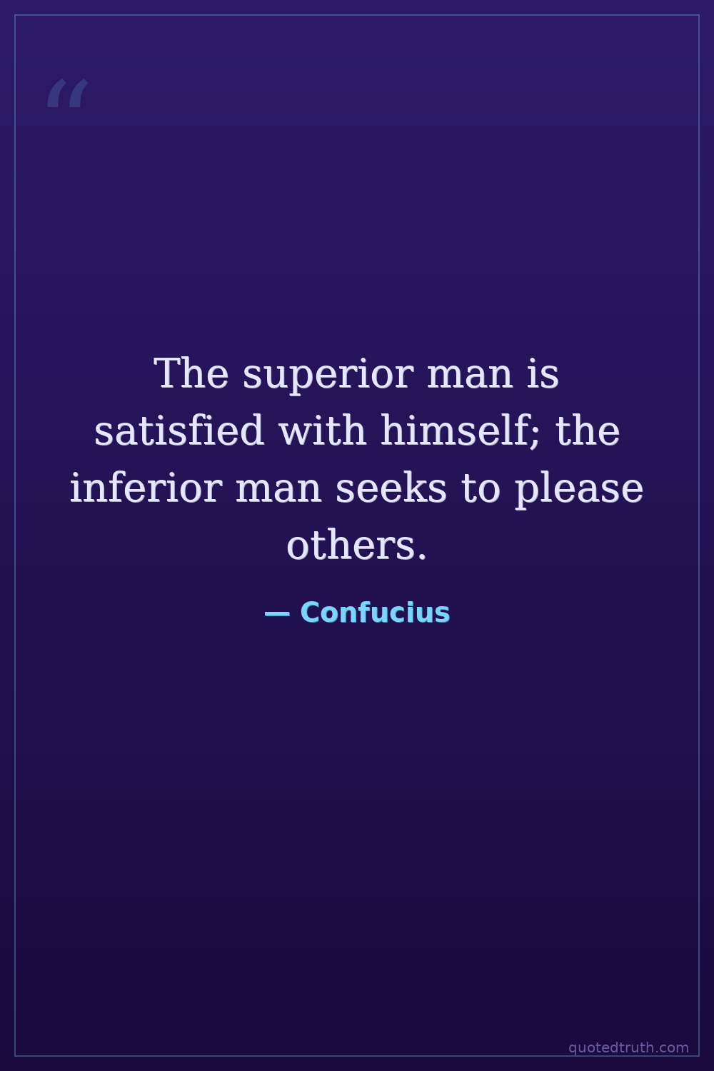 The superior man is satisfied with himself; the inferior man seeks to please others.