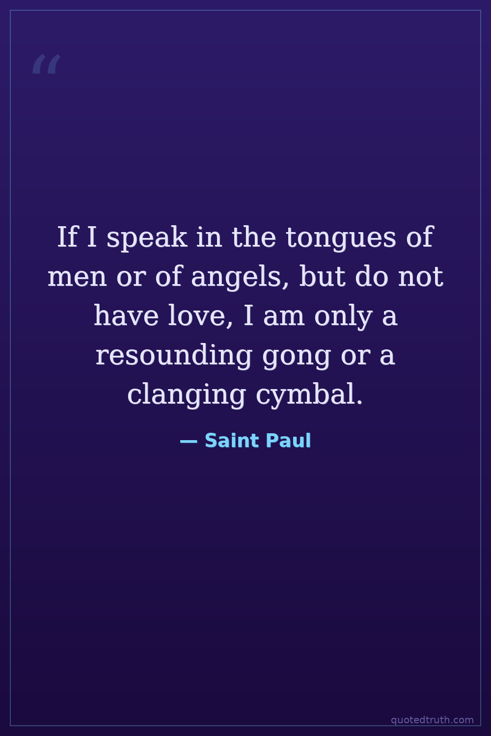 If I speak in the tongues of men or of angels, but do not have love, I am only a resounding gong or a clanging cymbal.