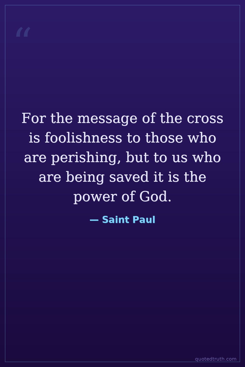 For the message of the cross is foolishness to those who are perishing, but to us who are being saved it is the power of God.