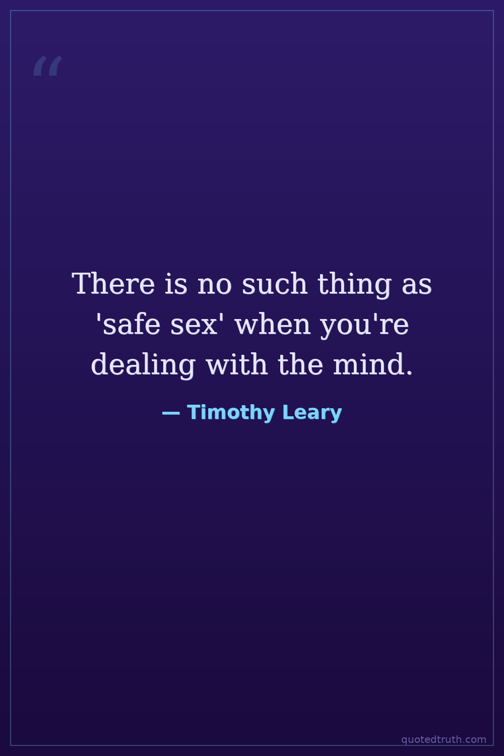 There is no such thing as 'safe sex' when you're dealing with the mind.