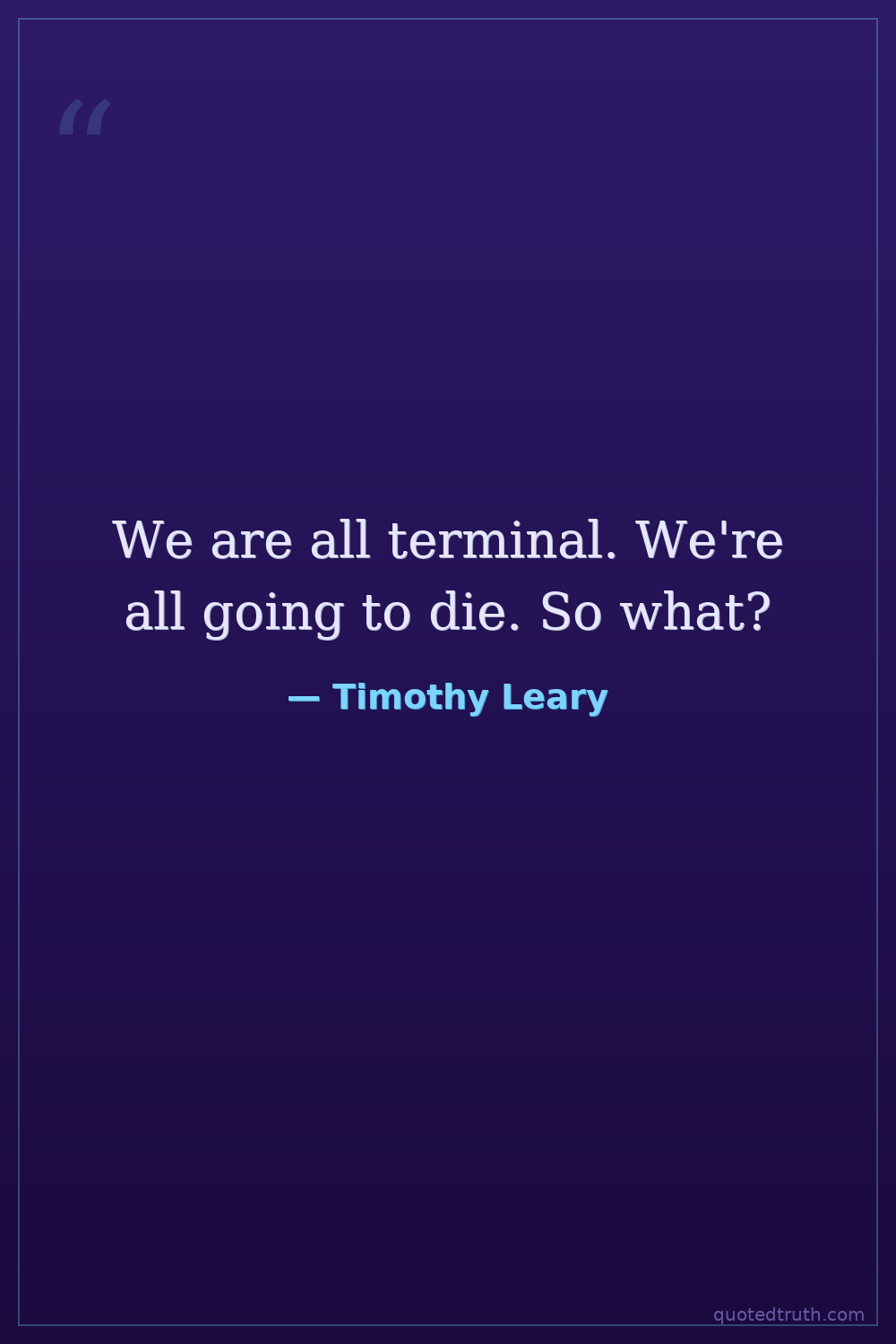 We are all terminal. We're all going to die. So what?