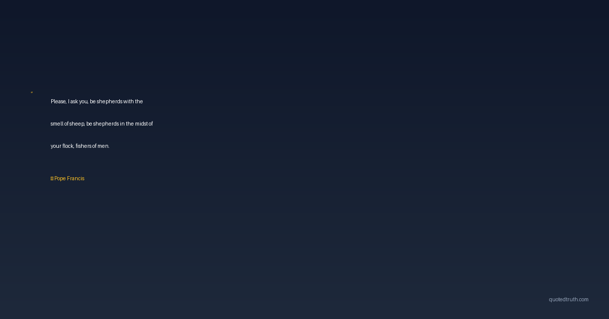 Please, I ask you, be shepherds with the smell of sheep, be shepherds in the midst of your flock, fishers of men.
