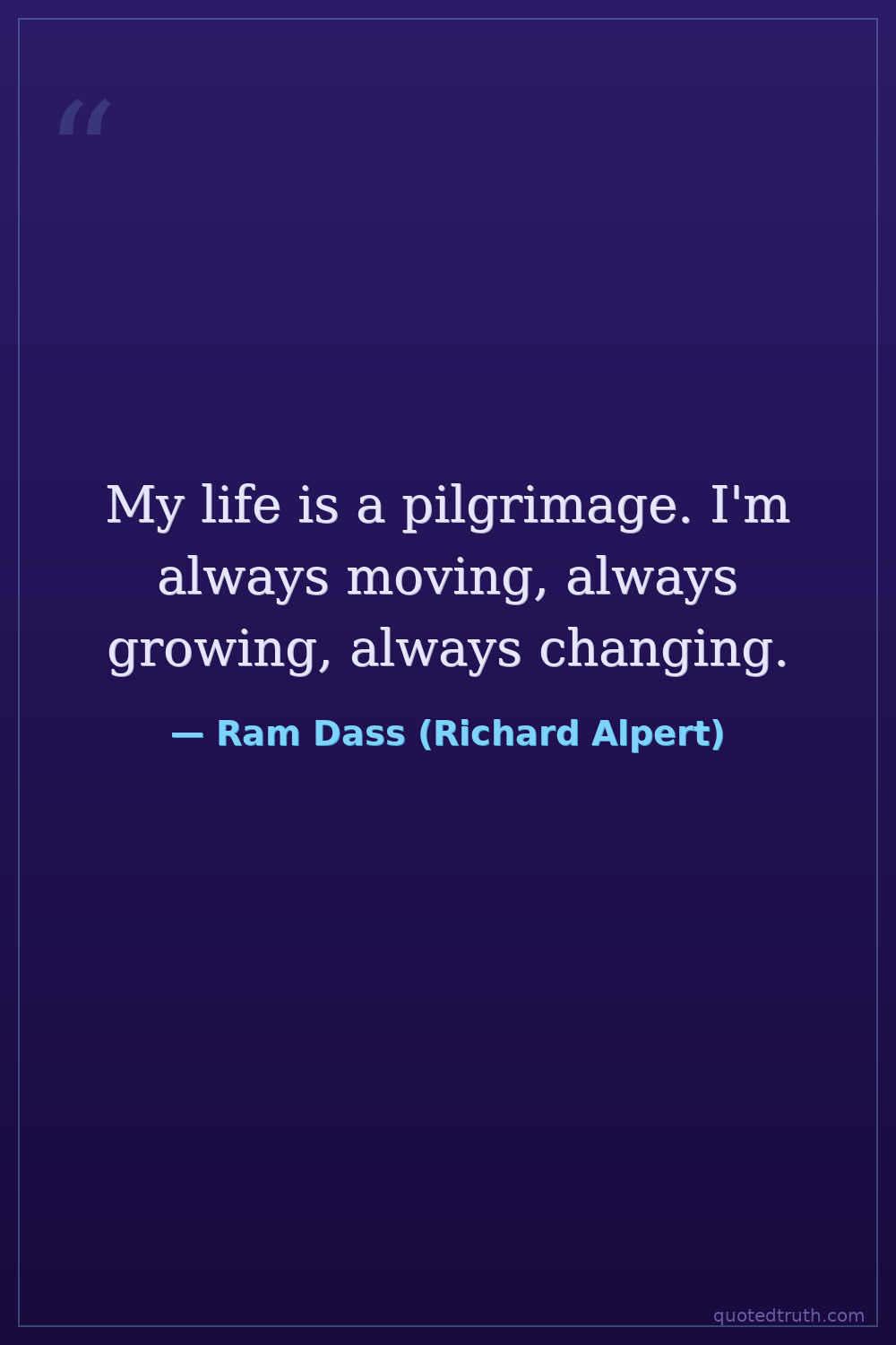 My life is a pilgrimage. I'm always moving, always growing, always changing.