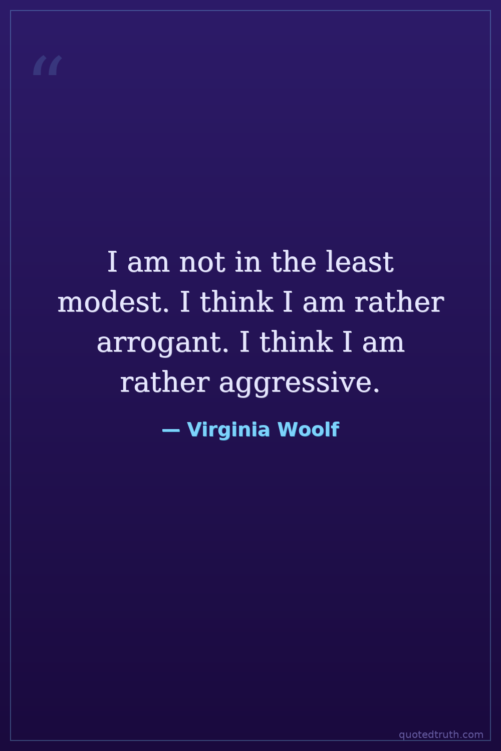 I am not in the least modest. I think I am rather arrogant. I think I am rather aggressive.