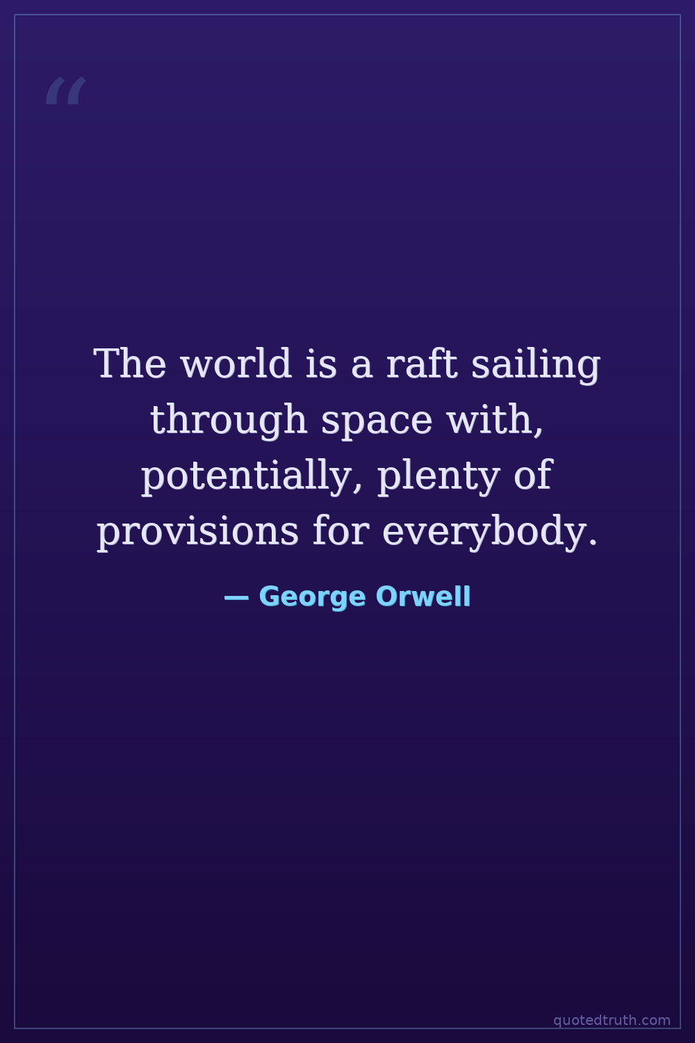 The world is a raft sailing through space with, potentially, plenty of provisions for everybody.