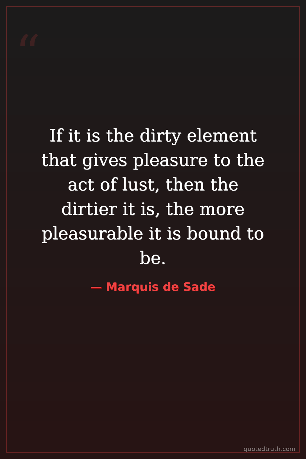 If it is the dirty element that gives pleasure to the act of lust, then the dirtier it is, the more pleasurable it is bound to be.
