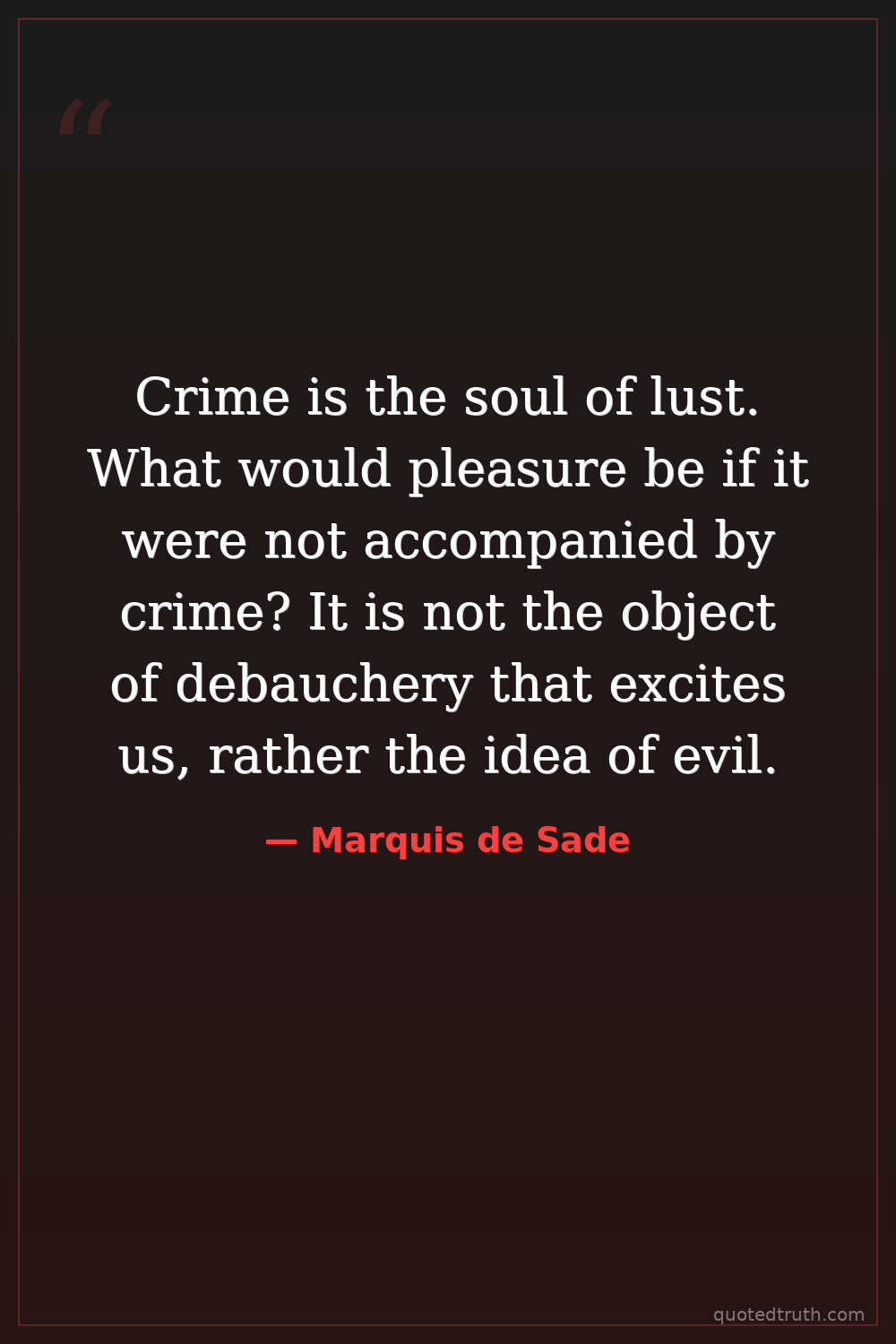 Crime is the soul of lust. What would pleasure be if it were not accompanied by crime? It is not the object of debauchery that excites us, rather the idea of evil.