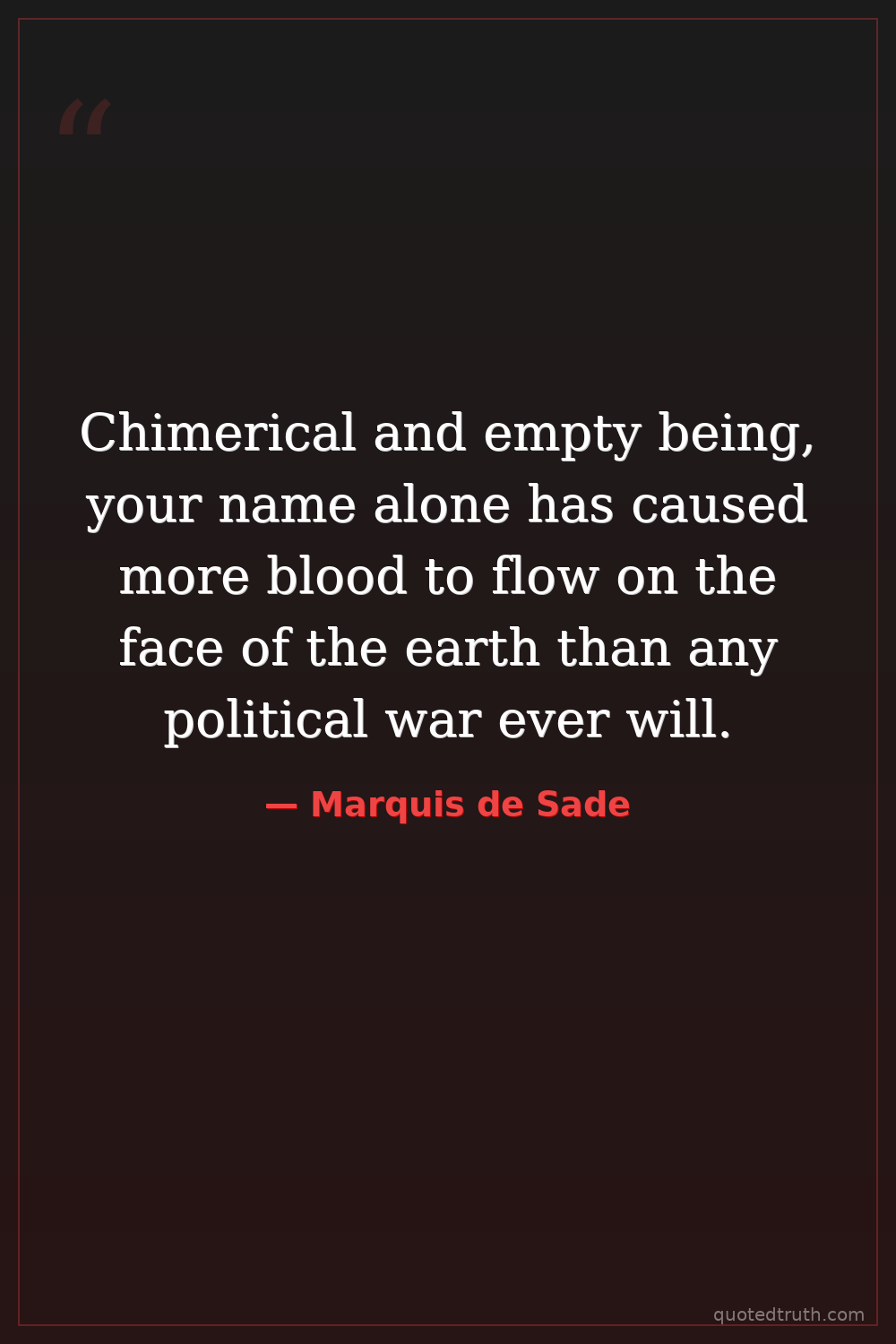 Chimerical and empty being, your name alone has caused more blood to flow on the face of the earth than any political war ever will.