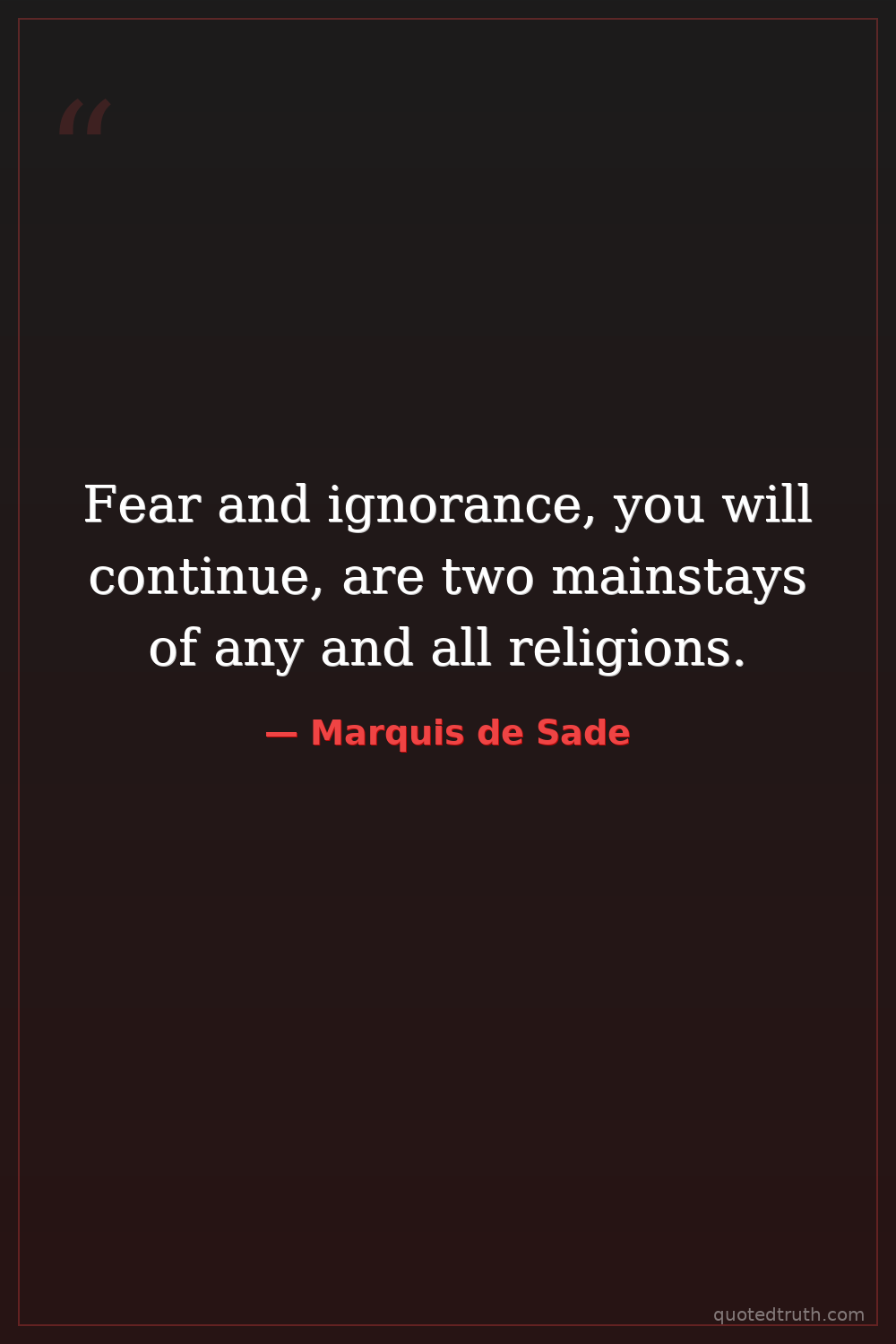 Fear and ignorance, you will continue, are two mainstays of any and all religions.
