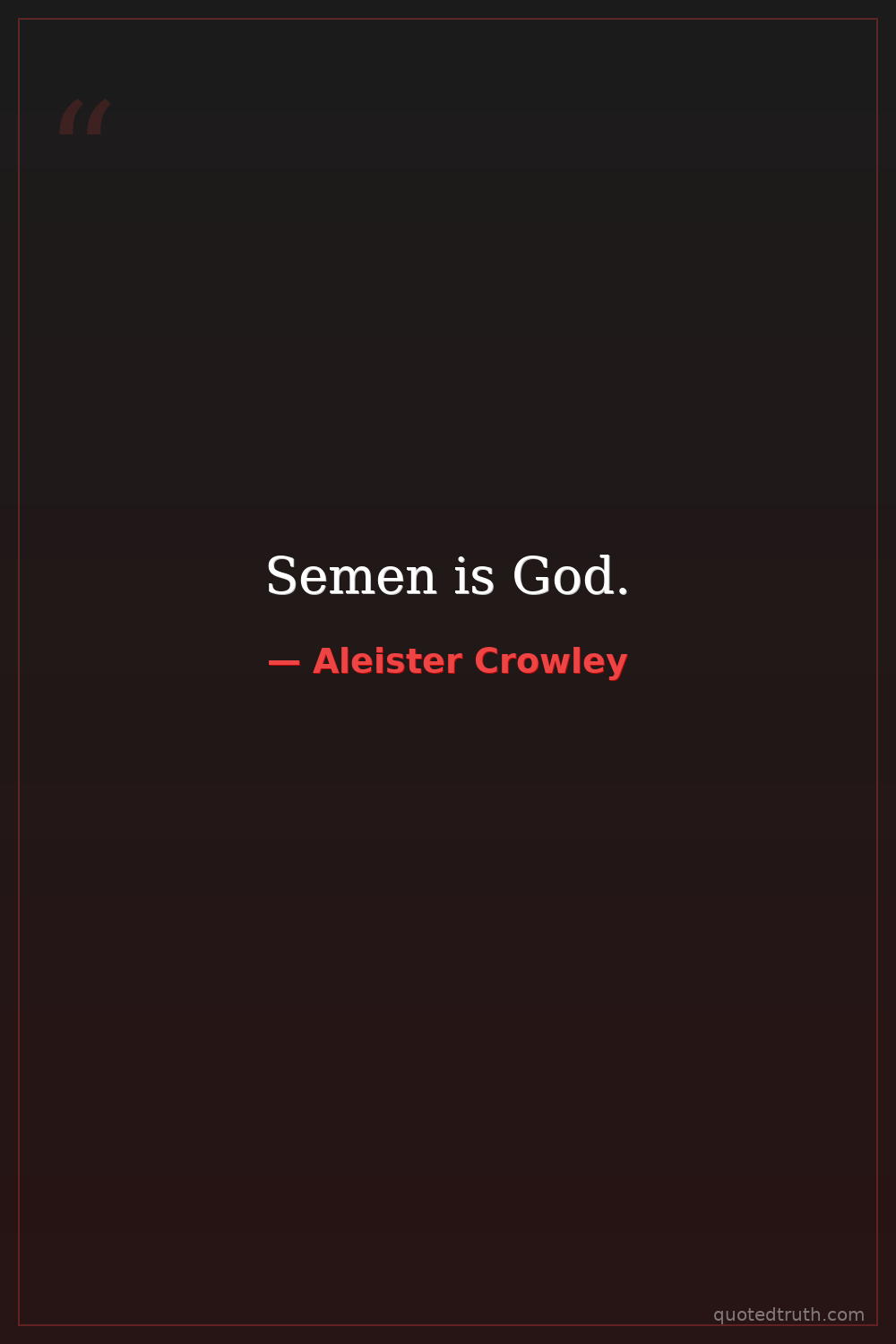 Reported as a statement from an eccentric friend, with Crowley's response, 'Sir, though I understand perfectly what you mean by Semen, I am unacquainted with the connotation which you attach to the term "God".'