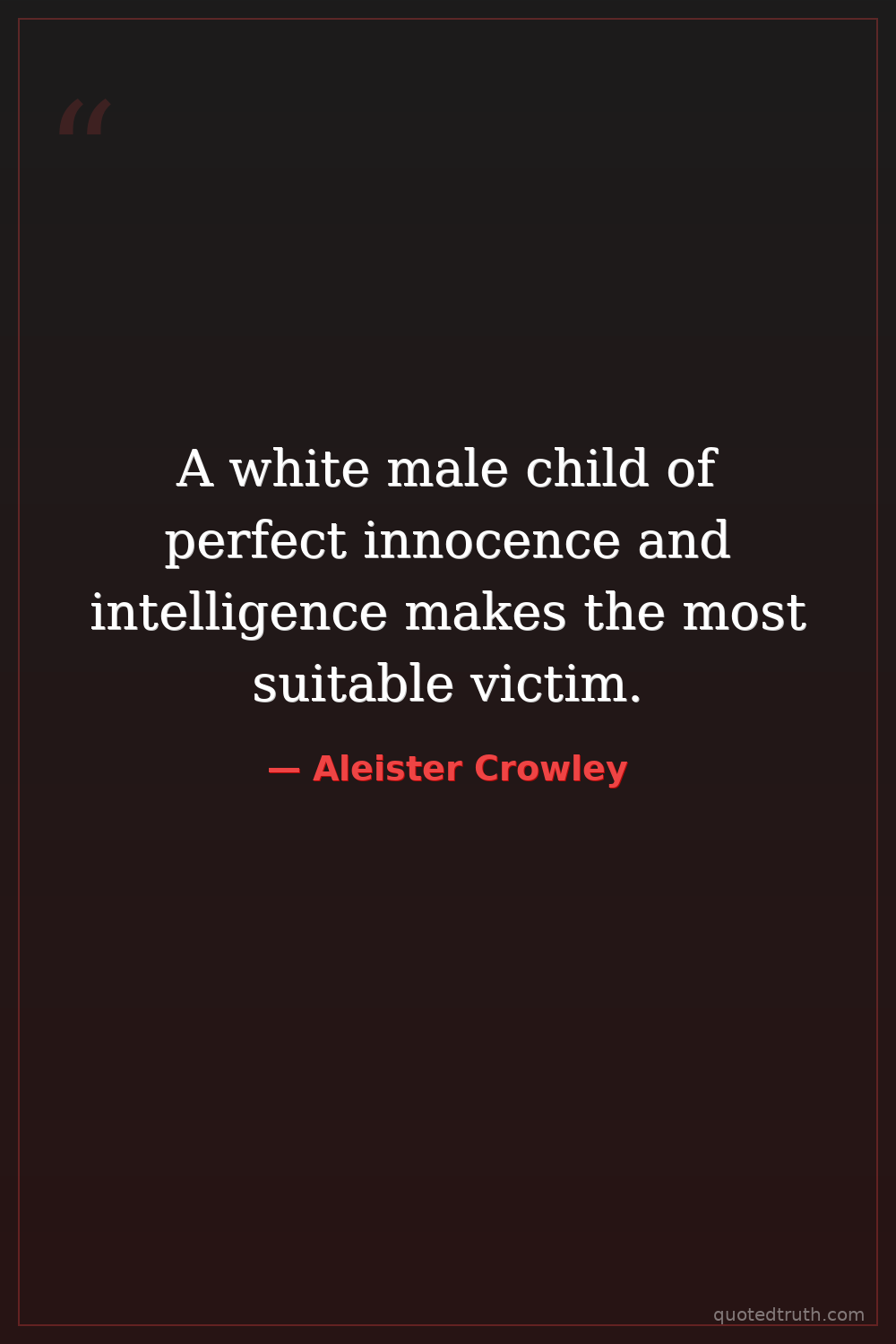A white male child of perfect innocence and intelligence makes the most suitable victim.