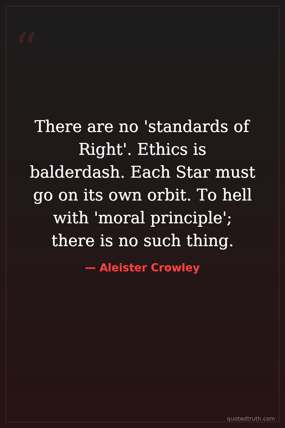 There are no 'standards of Right'. Ethics is balderdash. Each Star must go on its own orbit. To hell with 'moral principle'; there is no such thing.
