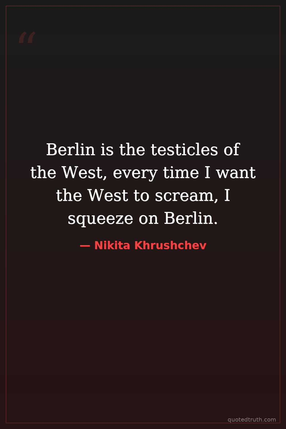 Berlin is the testicles of the West, every time I want the West to scream, I squeeze on Berlin.