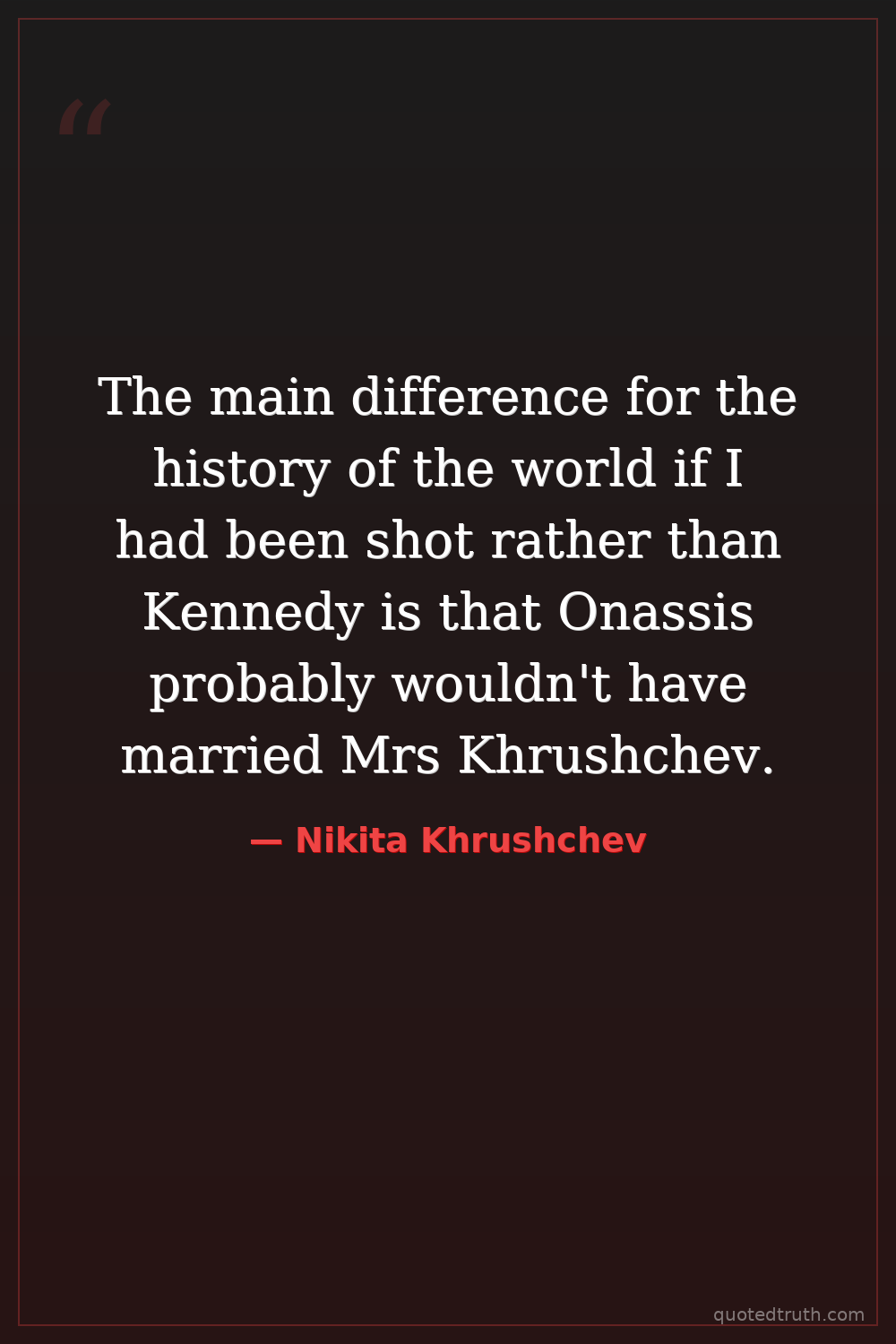 The main difference for the history of the world if I had been shot rather than Kennedy is that Onassis probably wouldn't have married Mrs Khrushchev.