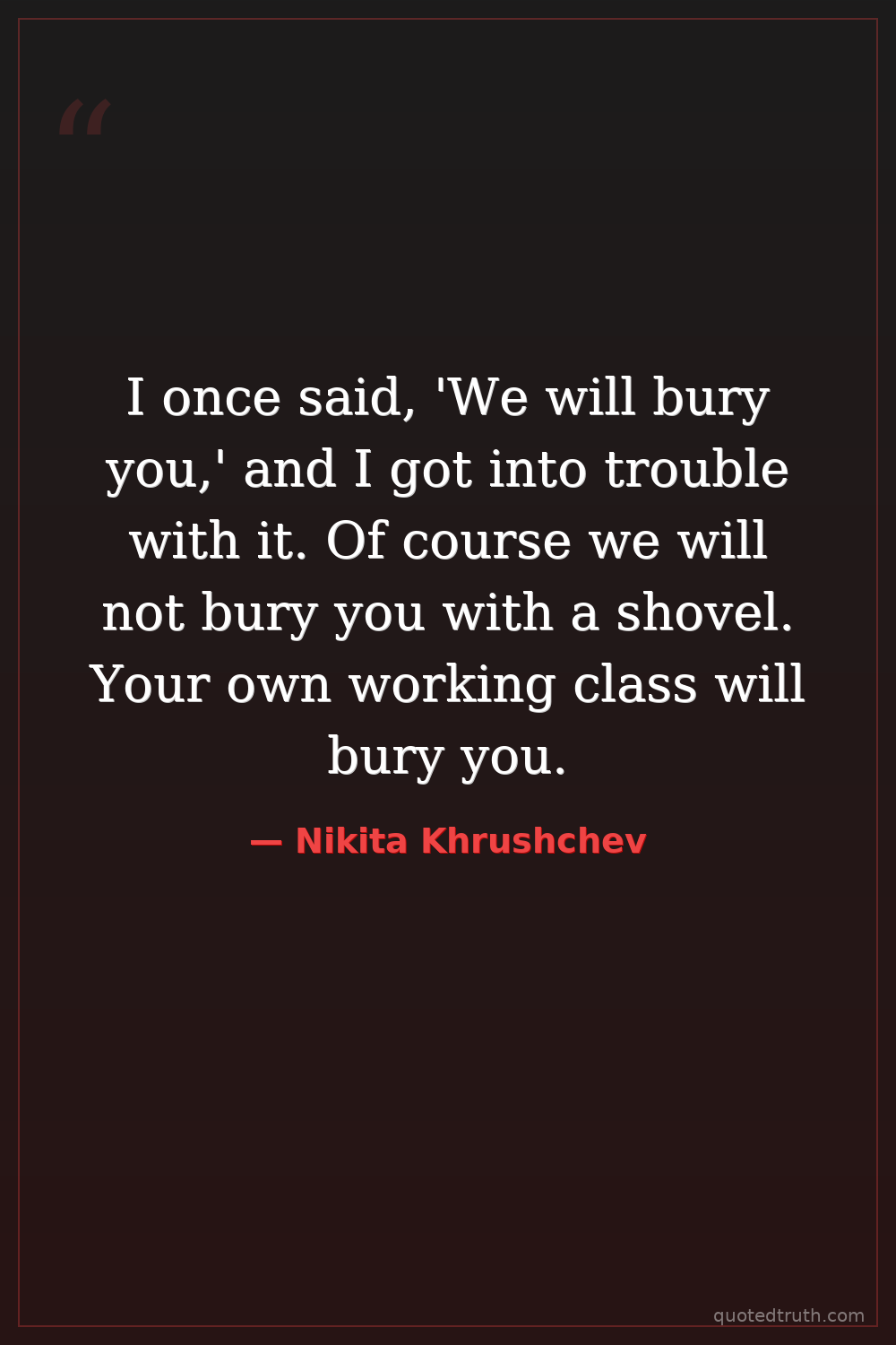I once said, 'We will bury you,' and I got into trouble with it. Of course we will not bury you with a shovel. Your own working class will bury you.