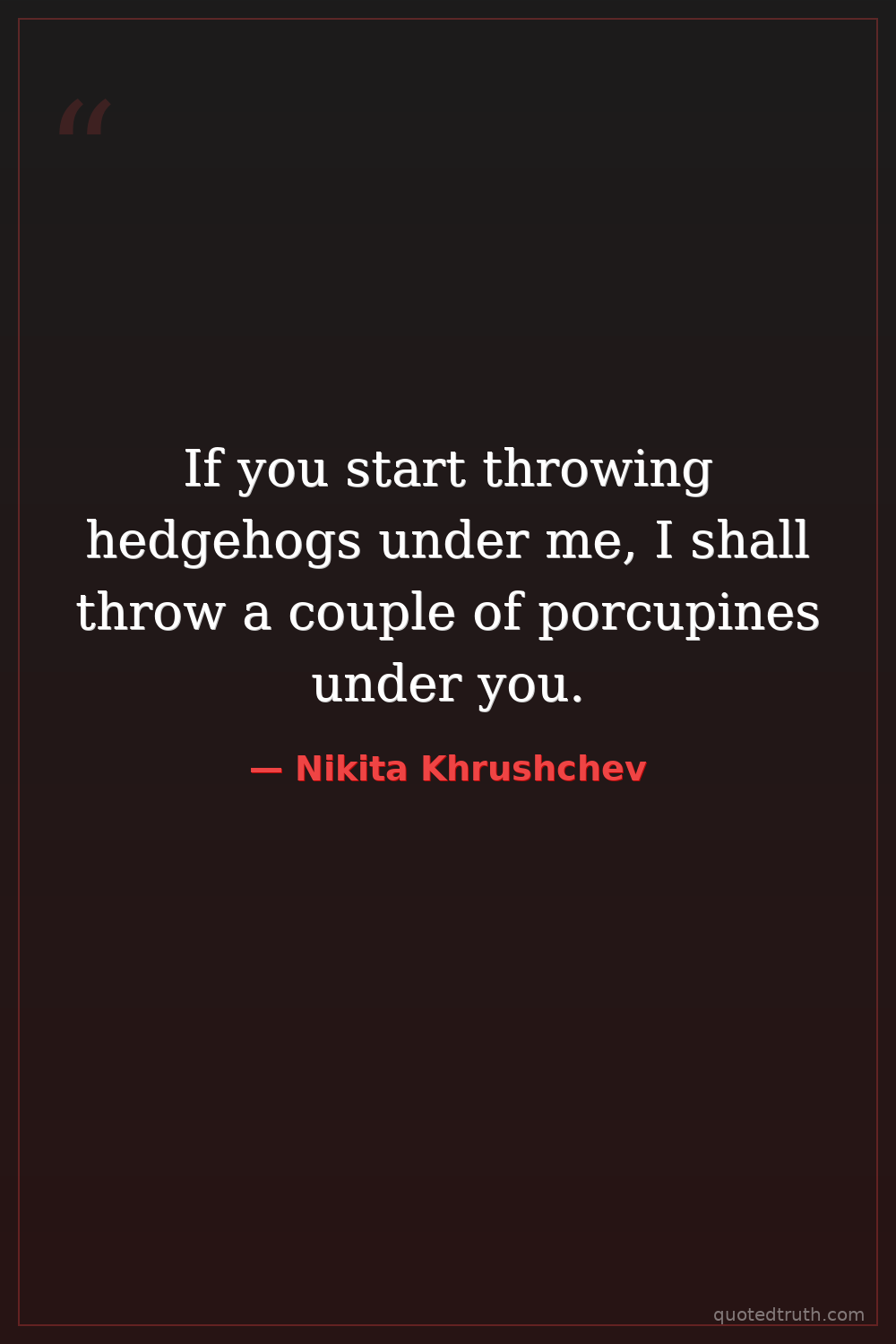 Nikita Khrushchev — "If you start throwing hedgehogs under me, I shall throw a couple of porcupines u…"