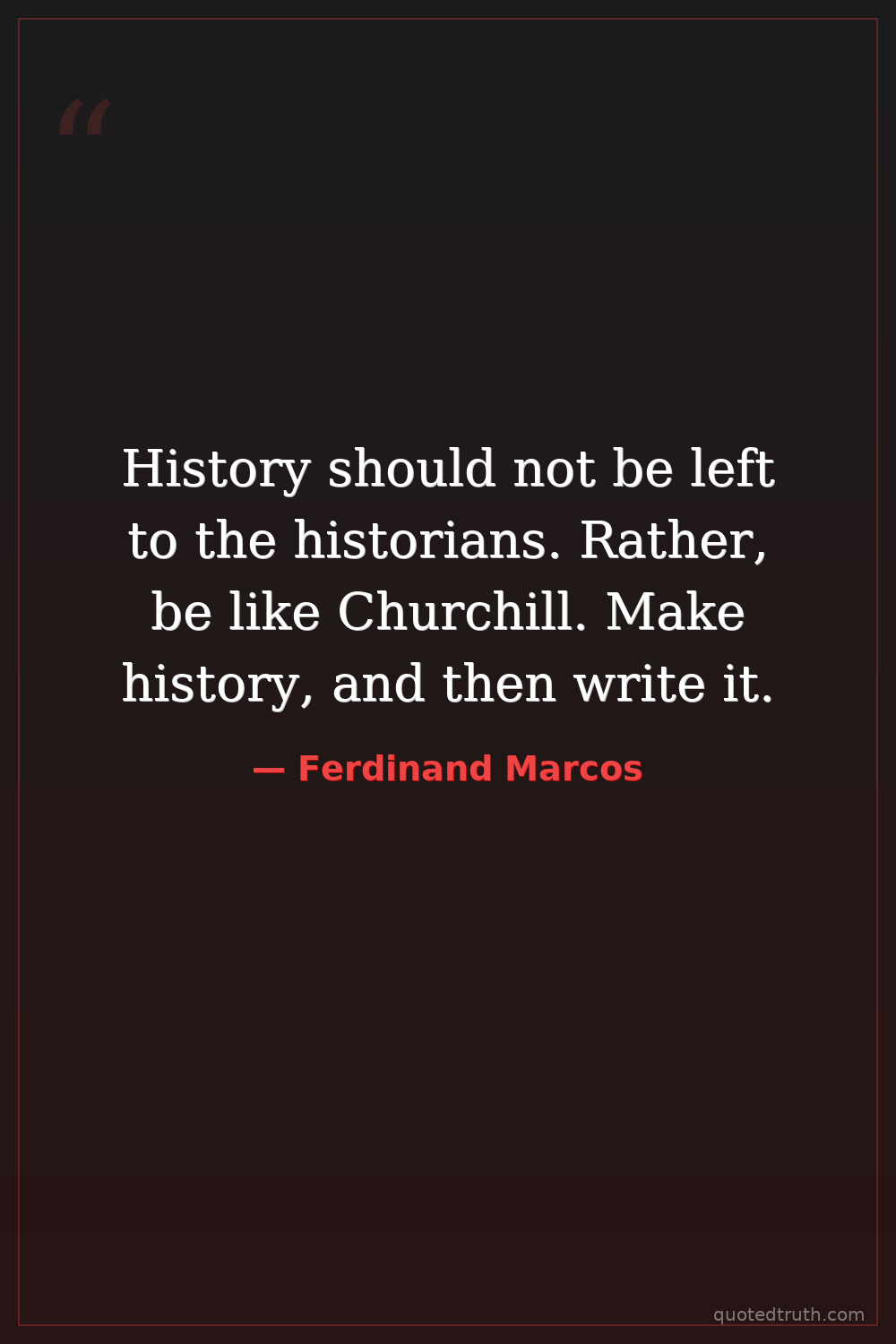 History should not be left to the historians. Rather, be like Churchill. Make history, and then write it.