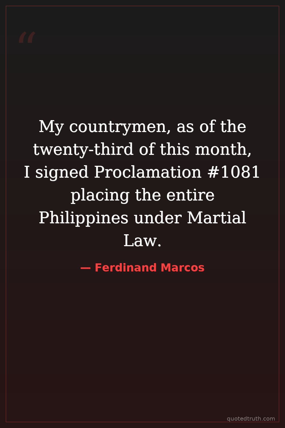 My countrymen, as of the twenty-third of this month, I signed Proclamation #1081 placing the entire Philippines under Martial Law.