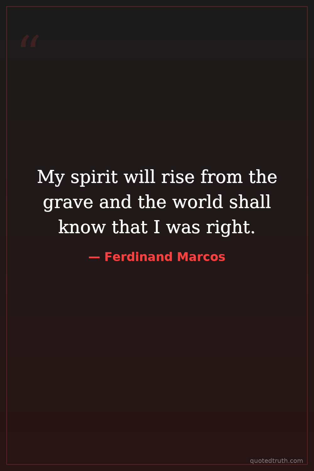 My spirit will rise from the grave and the world shall know that I was right.