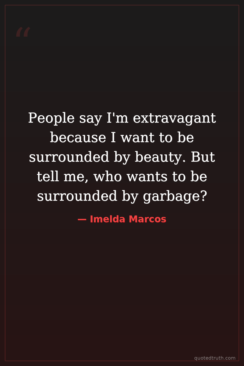 People say I'm extravagant because I want to be surrounded by beauty. But tell me, who wants to be surrounded by garbage?