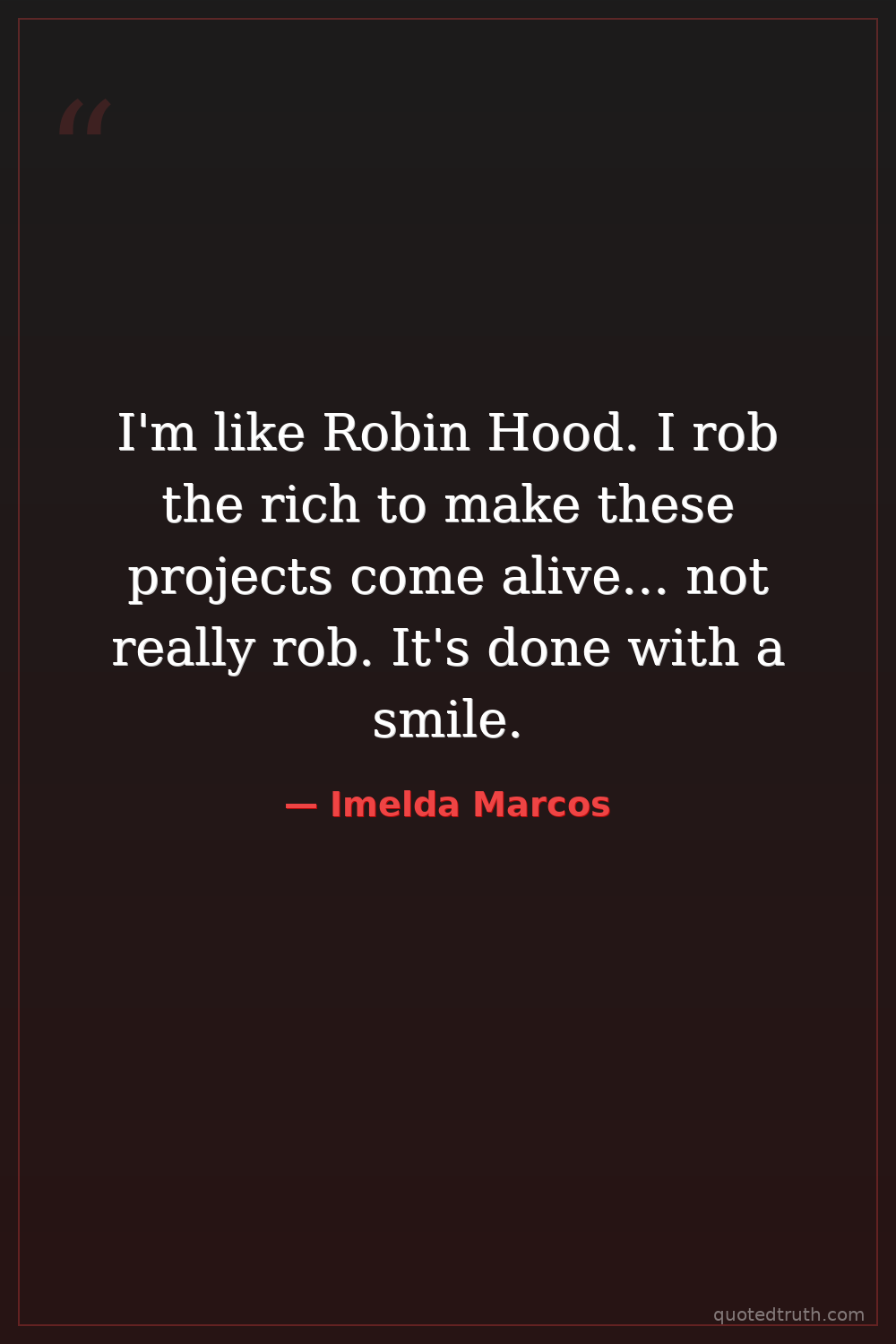 Controversial"I really had no great love for shoes. I was a working First Lady; I was always in canvas shoes. I did nurture the shoes industry of the Philippines, and so every time there was a shoe fair, I would re…"