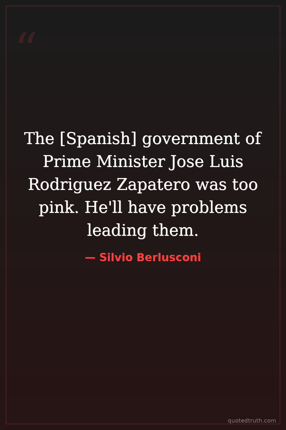 The [Spanish] government of Prime Minister Jose Luis Rodriguez Zapatero was too pink. He'll have problems leading them.