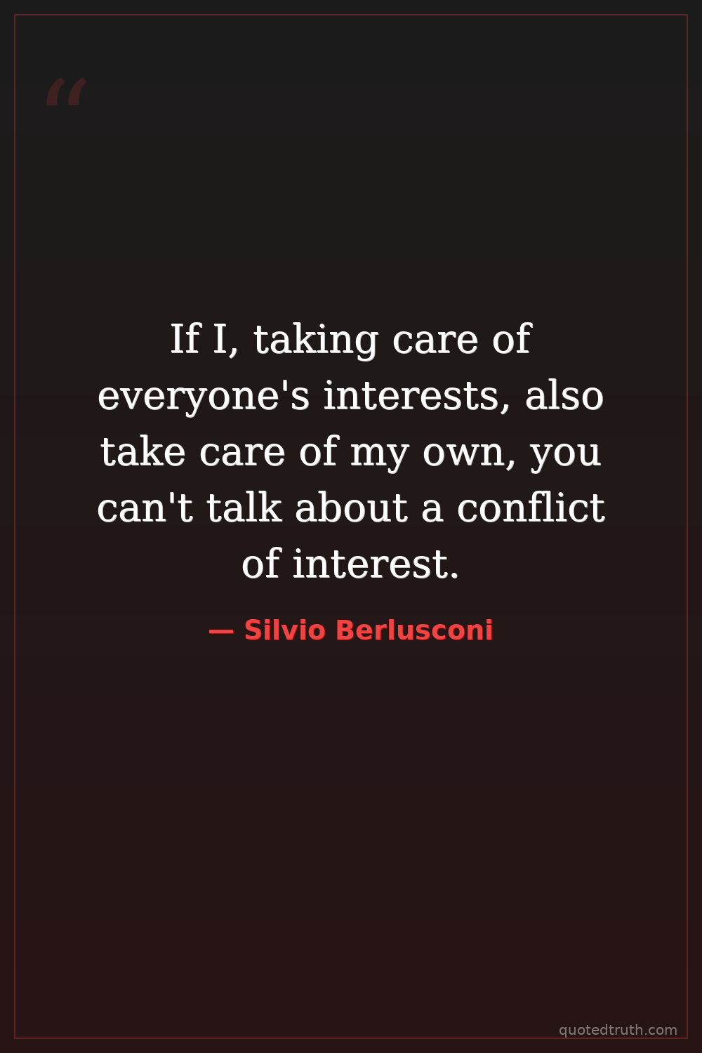 If I, taking care of everyone's interests, also take care of my own, you can't talk about a conflict of interest.