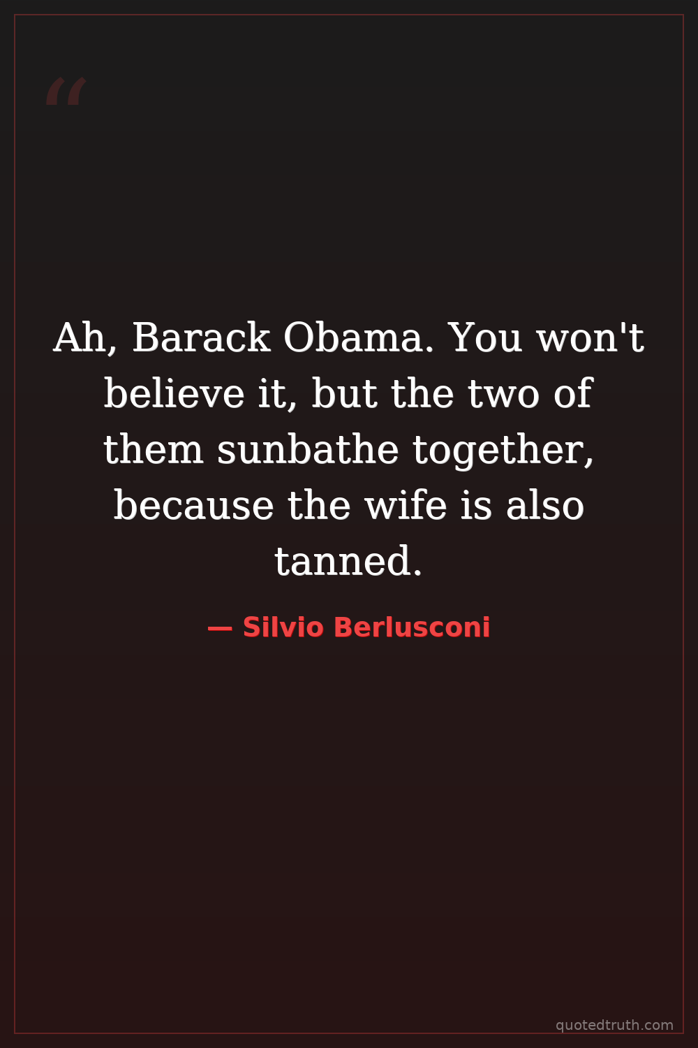 Ah, Barack Obama. You won't believe it, but the two of them sunbathe together, because the wife is also tanned.