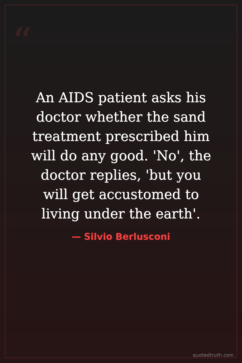 An AIDS patient asks his doctor whether the sand treatment prescribed him will do any good. 'No', the doctor replies, 'but you will get accustomed to living under the earth'.