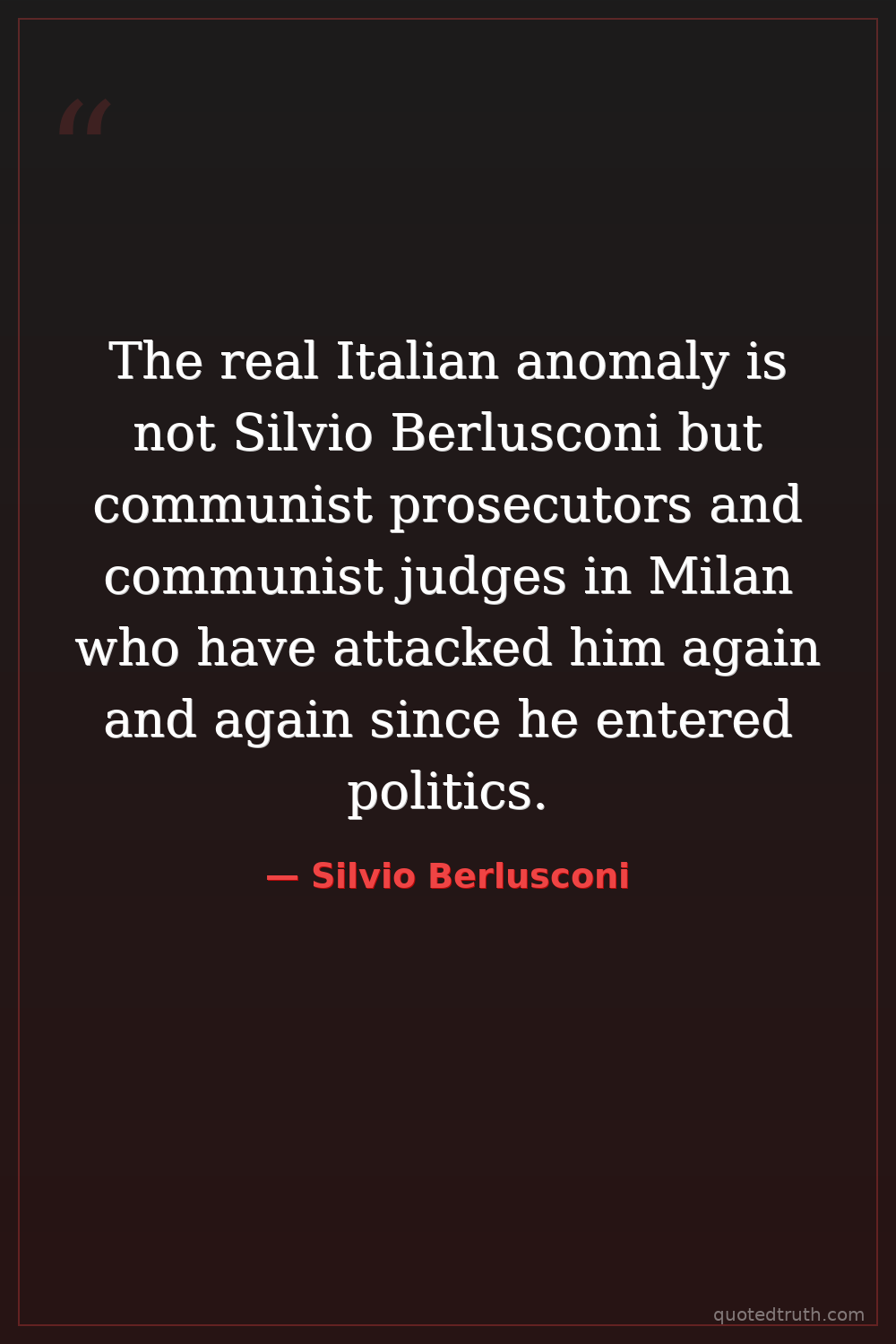 The real Italian anomaly is not Silvio Berlusconi but communist prosecutors and communist judges in Milan who have attacked him again and again since he entered politics.