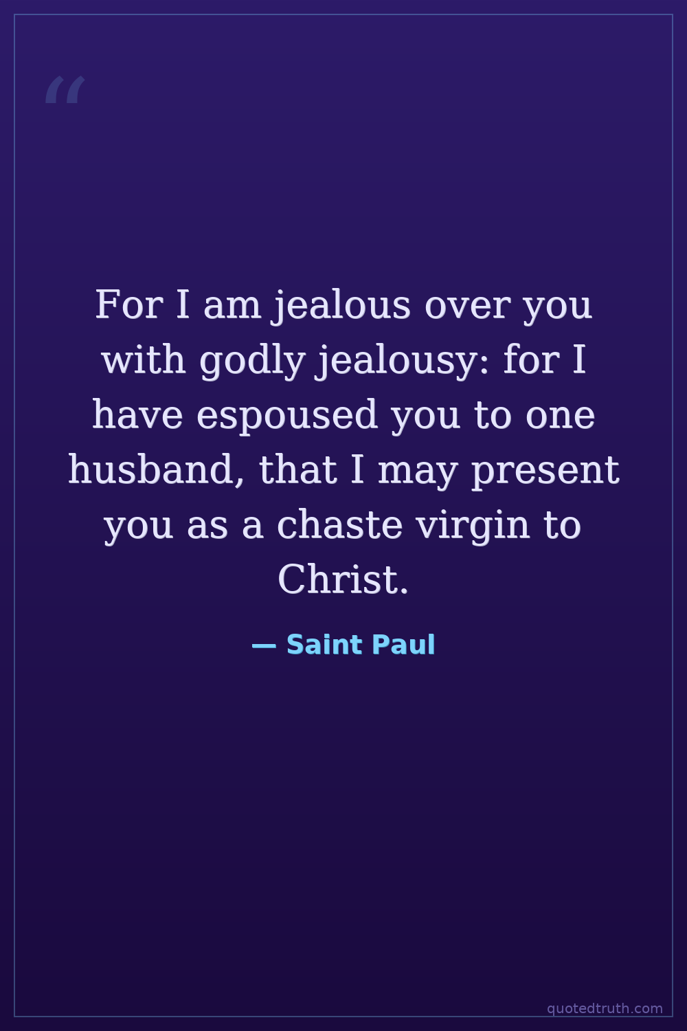 For I am jealous over you with godly jealousy: for I have espoused you to one husband, that I may present you as a chaste virgin to Christ.