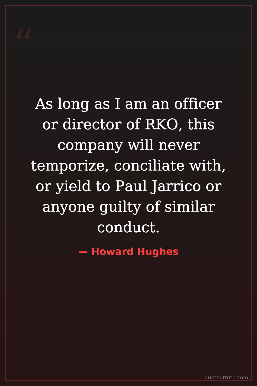 As long as I am an officer or director of RKO, this company will never temporize, conciliate with, or yield to Paul Jarrico or anyone guilty of similar conduct.