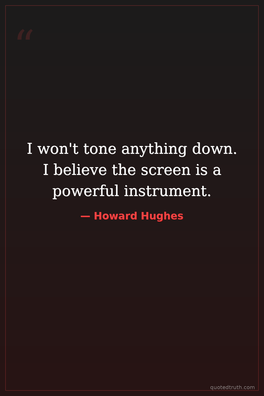 I won't tone anything down. I believe the screen is a powerful instrument.