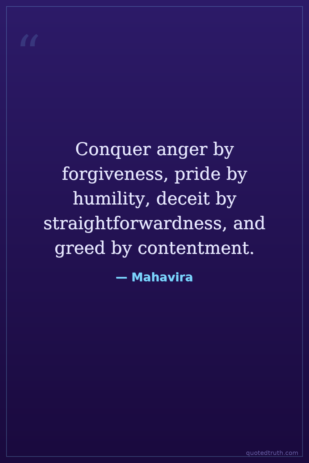 Conquer anger by forgiveness, pride by humility, deceit by straightforwardness, and greed by contentment.