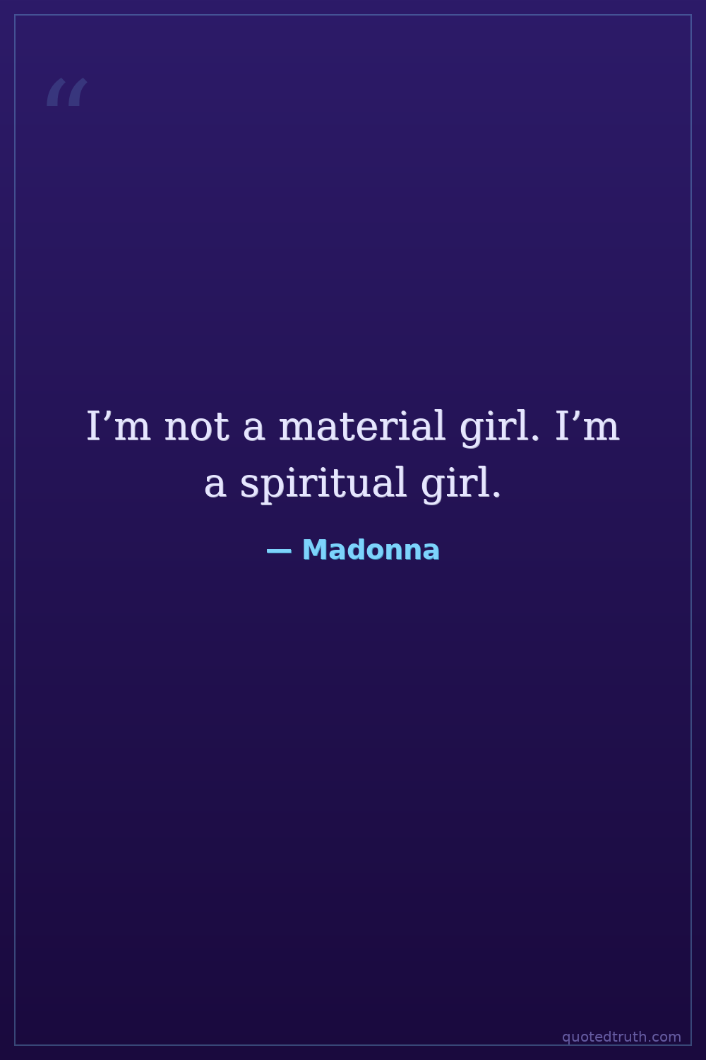I’m not a material girl. I’m a spiritual girl.