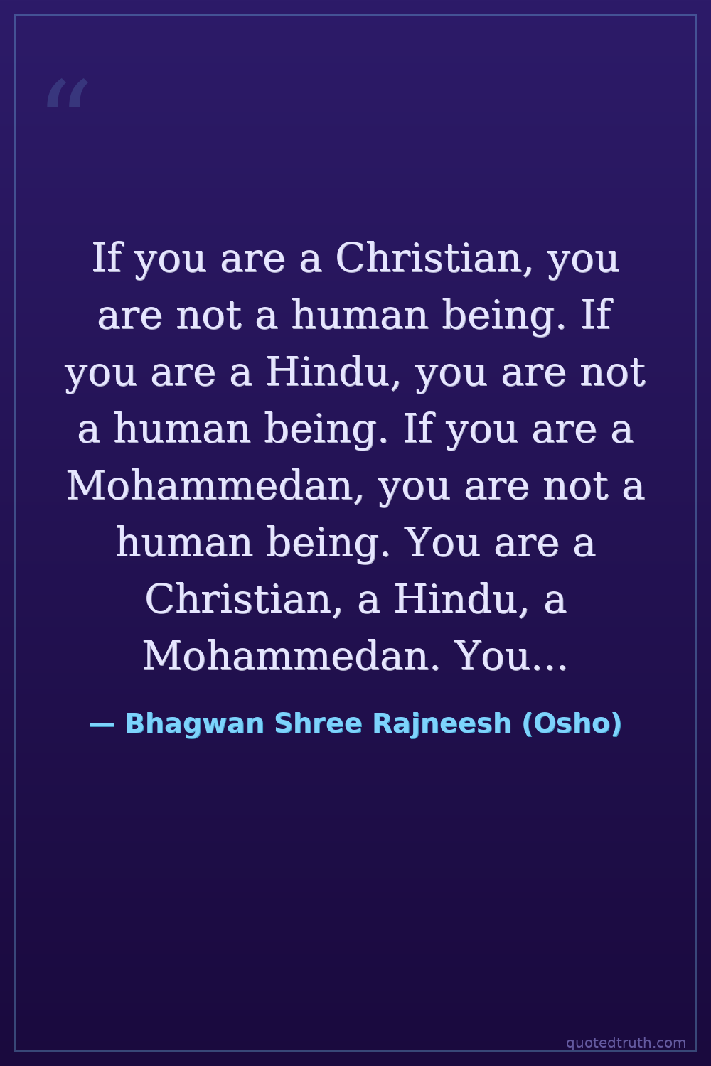 If you are a Christian, you are not a human being. If you are a Hindu, you are not a human being. If you are a Mohammedan, you are not a human being. You are a Christian, a Hindu, a Mohammedan. You are not a human being.