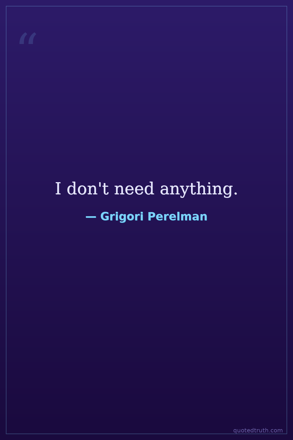 Humorous"The main reason is that I am not satisfied with the organization of the mathematical community. It is not fair. I am not going to be a part of it."