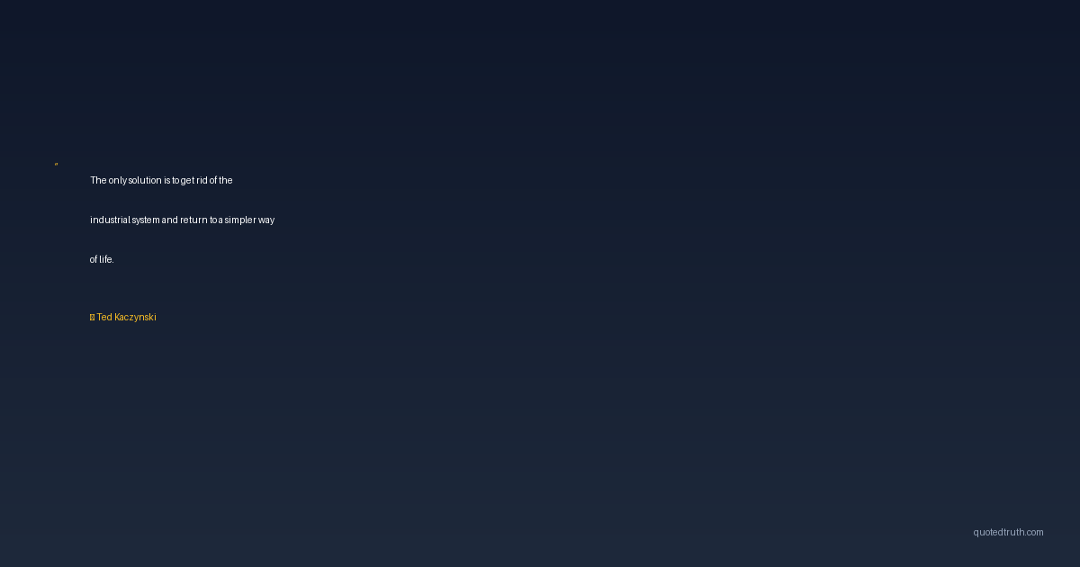 The only solution is to get rid of the industrial system and return to a simpler way of life.
