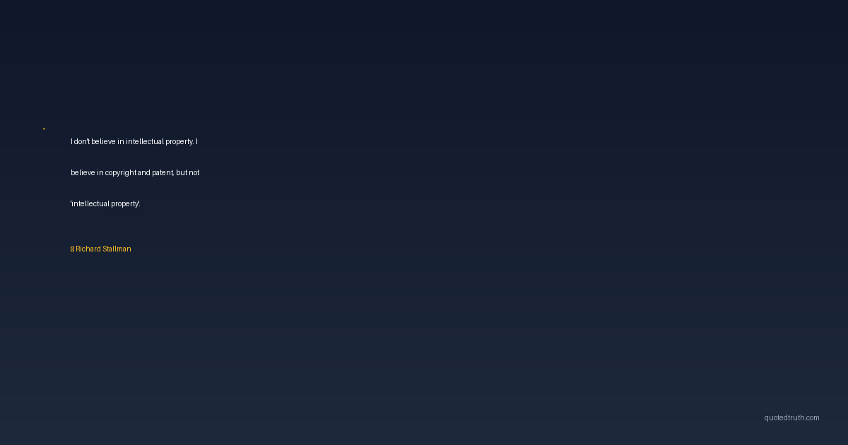 I don't believe in intellectual property. I believe in copyright and patent, but not 'intellectual property'.
