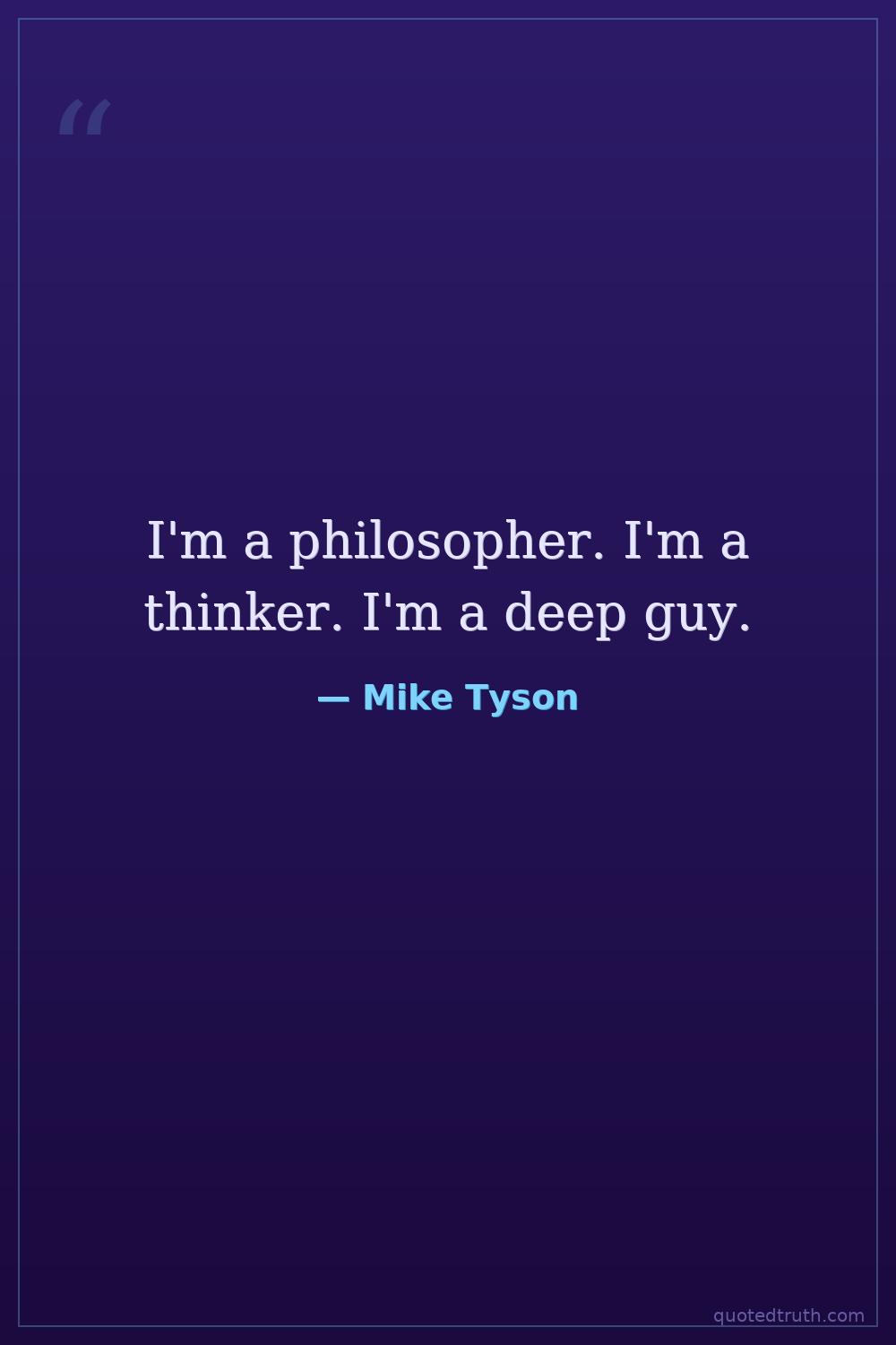 I'm a philosopher. I'm a thinker. I'm a deep guy.