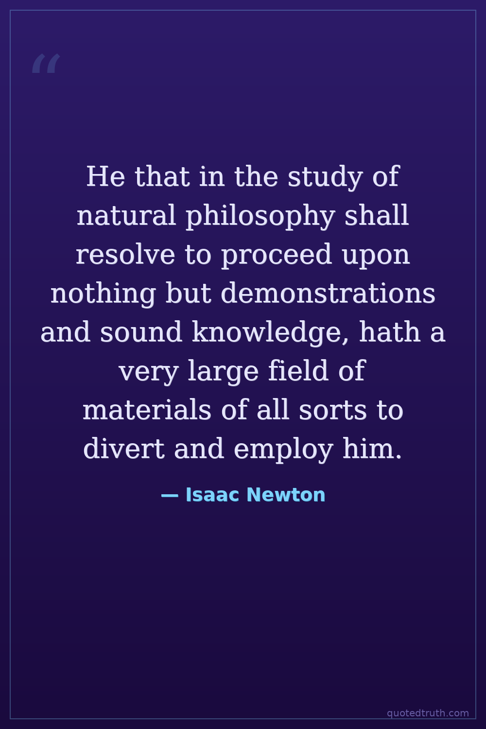 He that in the study of natural philosophy shall resolve to proceed upon nothing but demonstrations and sound knowledge, hath a very large field of materials of all sorts to divert and employ him.
