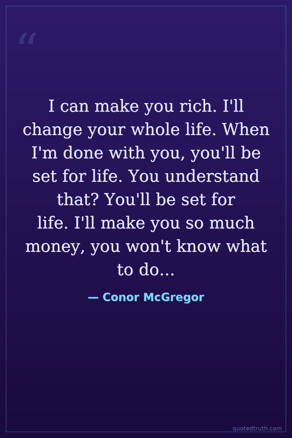 I can make you rich. I'll change your whole life. When I'm done with you, you'll be set for life. You understand that? You'll be set for life. I'll make you so much money, you won't know what to do with it.