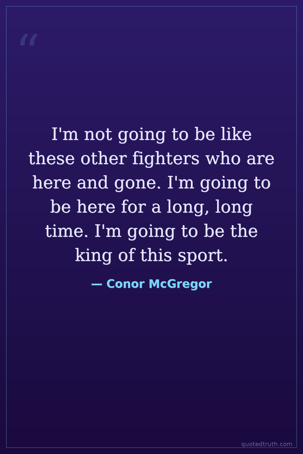 I'm not going to be like these other fighters who are here and gone. I'm going to be here for a long, long time. I'm going to be the king of this sport.