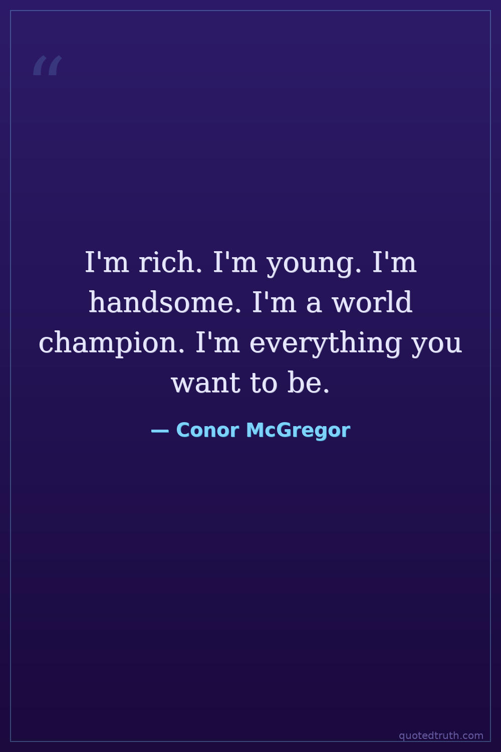 I'm rich. I'm young. I'm handsome. I'm a world champion. I'm everything you want to be.
