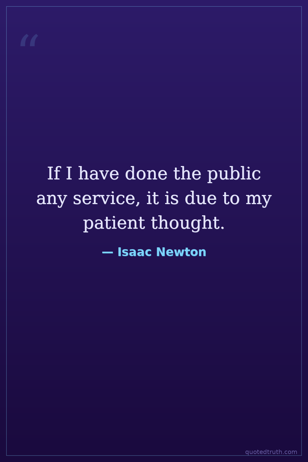 If I have done the public any service, it is due to my patient thought.