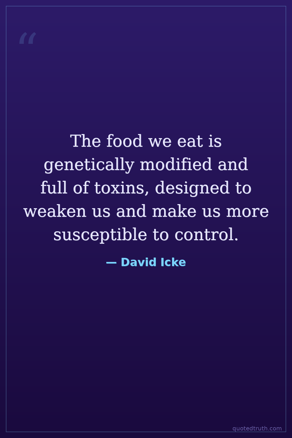 The food we eat is genetically modified and full of toxins, designed to weaken us and make us more susceptible to control.