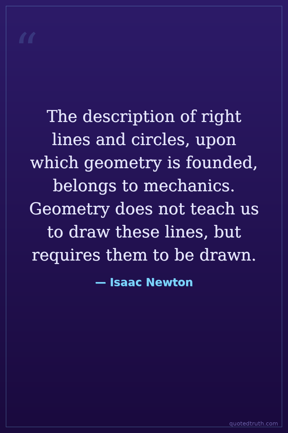 The description of right lines and circles, upon which geometry is founded, belongs to mechanics. Geometry does not teach us to draw these lines, but requires them to be drawn.