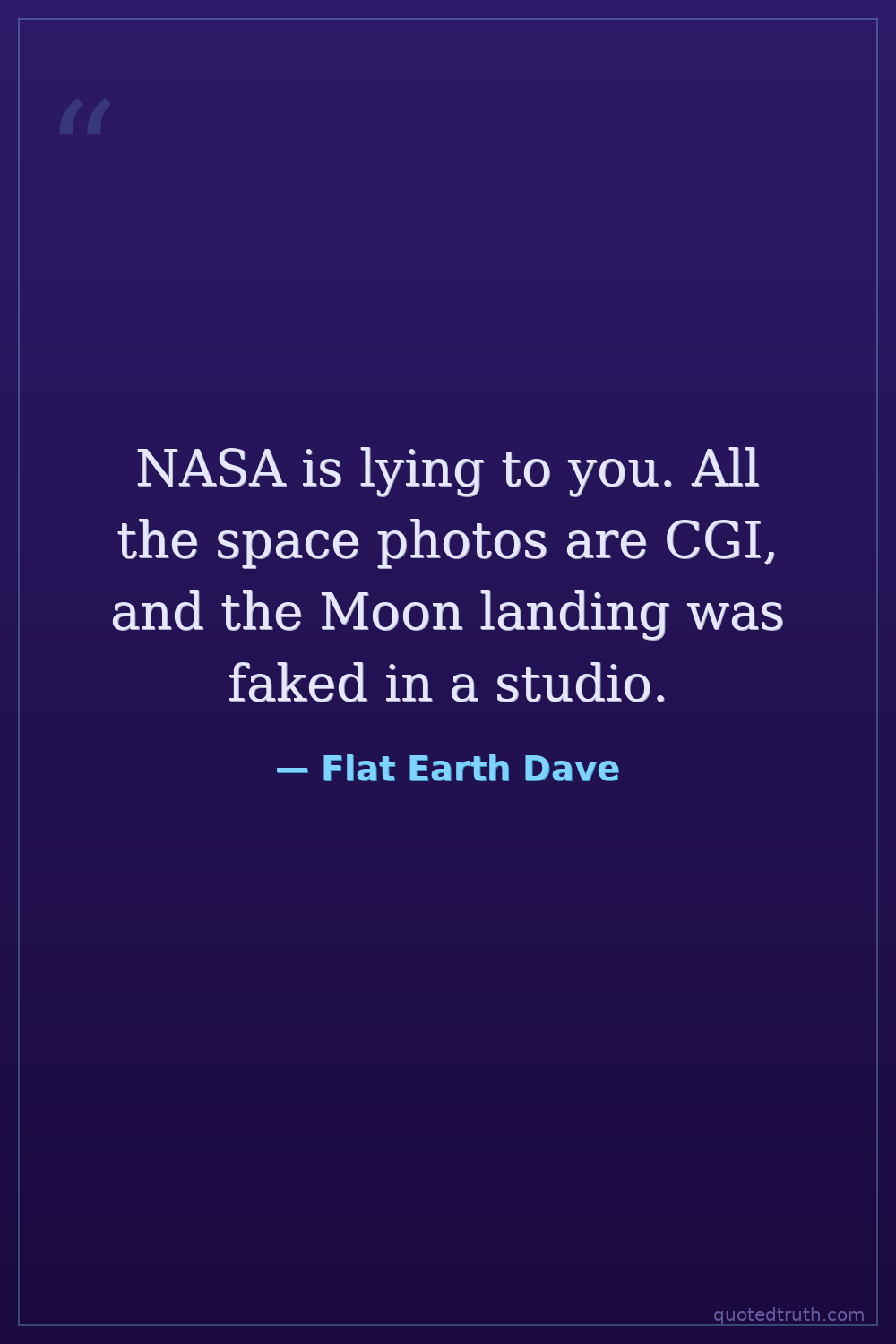 NASA is lying to you. All the space photos are CGI, and the Moon landing was faked in a studio.